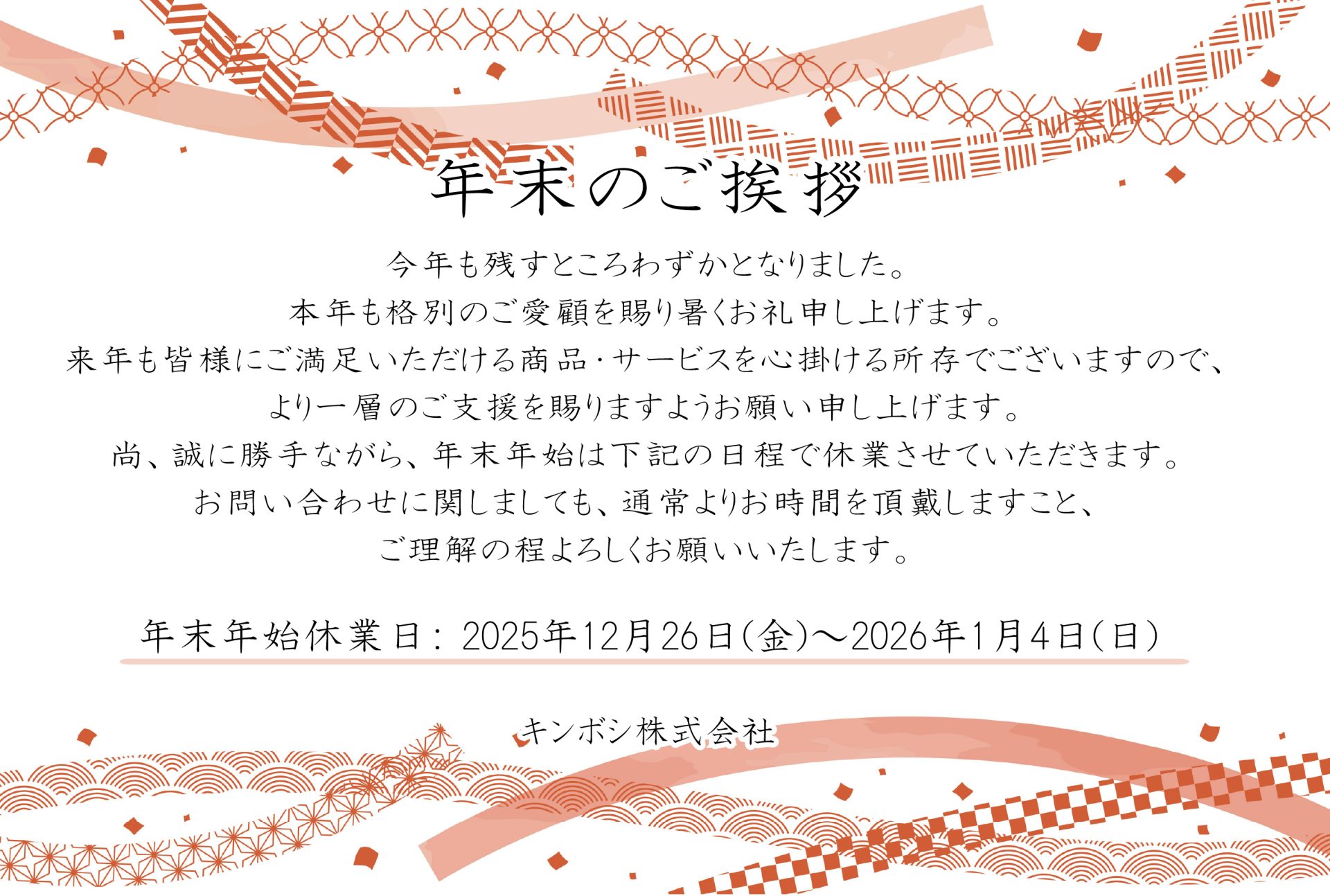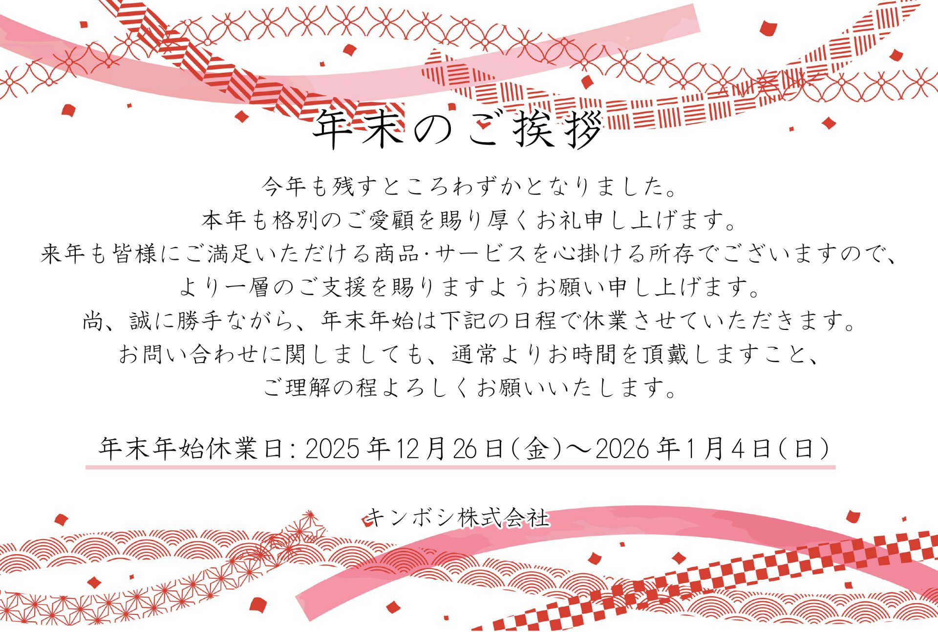 年末年始のスケジュールについて